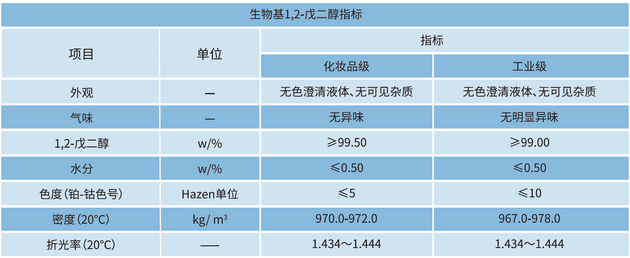 生物基1,2-戊二醇采用国内最新糠醇加氢工艺技术,以糠醇为原料替代传统石油基原料进行生产,兼具低碳排放的环保性与出色的安全性,可直接应用于化妆品等高附加值领域,在原料绿色性、工艺先进性和应用高端性上具备显著优势。
